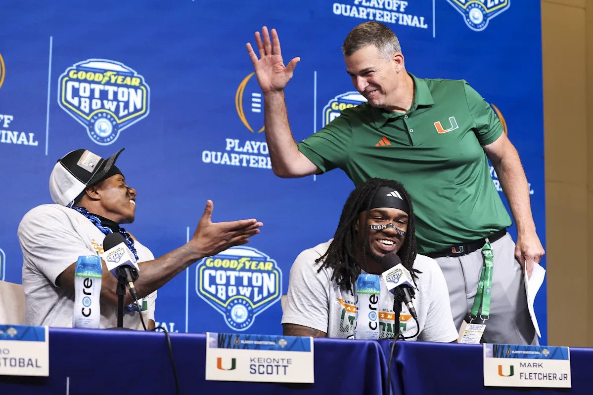 We all know what happened on the Buckeyes’ next possession. I have to admit, I was somewhat demoralized by the long pass to Jeremiah Smith to open their drive. That dude is special and I didn’t want to see him get going. And then..bang! The SOTU Play of the Year happened when Keionte Scott read the play perfectly and snatched the horizontal pass from Julian Sayin for a 72-yard pick-six. Woo! I jumped up, put my arms in the air, and yelled out loud. My son looked up with excitement and said “Yay daddy!”. I leaned down to him for a double high-five and said “Go Miami!”. He responded in kind, “Go Miami!”. It was so awesomely cute; one of the best Miami Hurricanes football moments of my lifetime.
