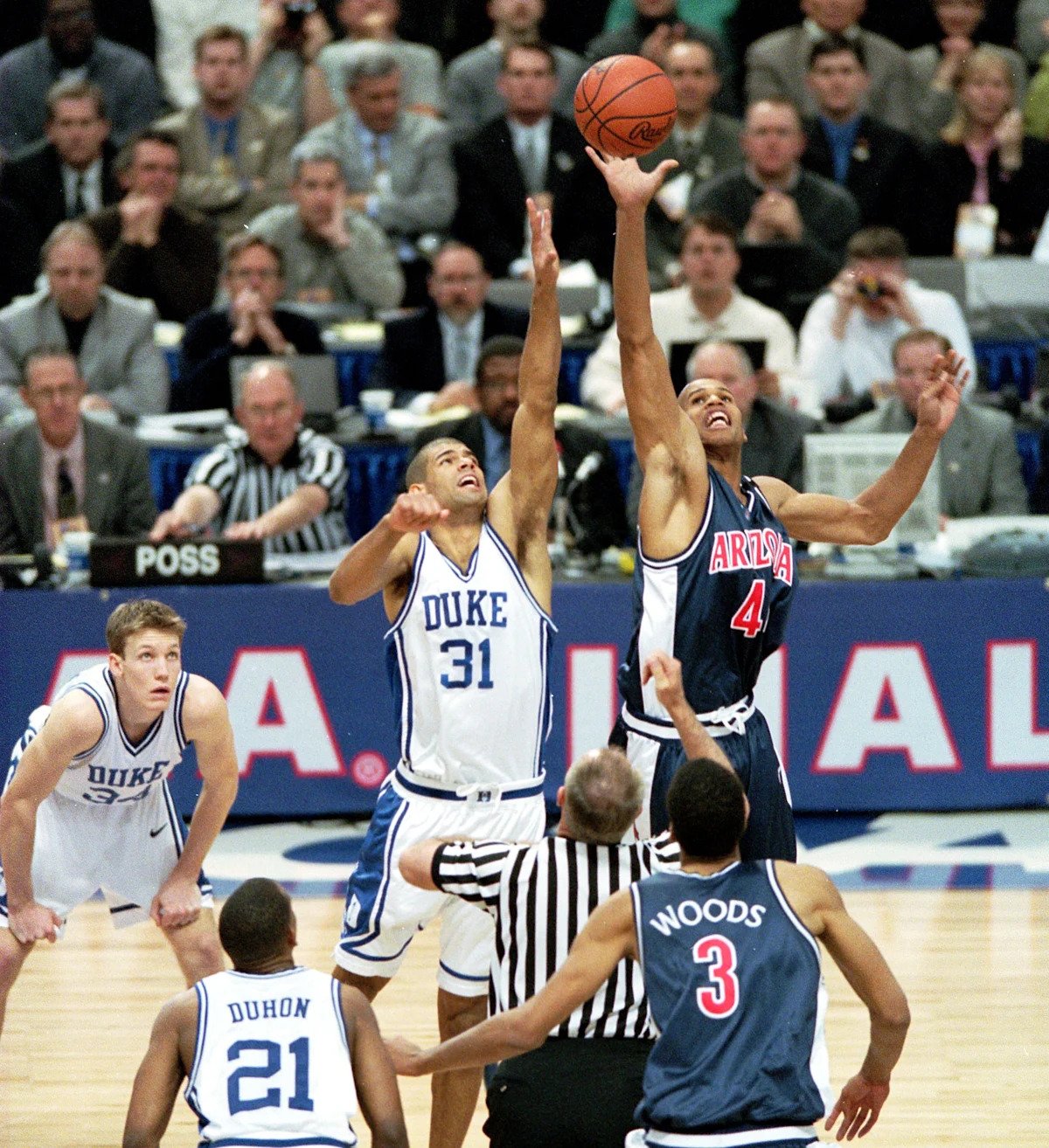 Arizona faced Duke in the national title game. The Blue Devils, led by Shane Battier, Mike Dunleavy Jr. and Jay Williams were the top seed in the East region.