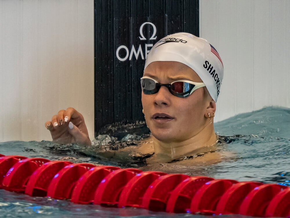 Indiana freshman Alex Shackell got a strong start to her first Big Ten meet with a top seed in the 100 butterfly. The 2024 Olympian got to the wall in 50.60 to hold off the field by a half second.