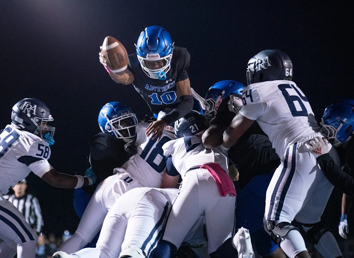 Aaden Adams’ one-handed interception on an FRA halfback pass attempt thwarted a two-point conversion with five seconds remaining in the fourth quarter, securing Antioch’s first 8-0 TSSAA football start since 1963.