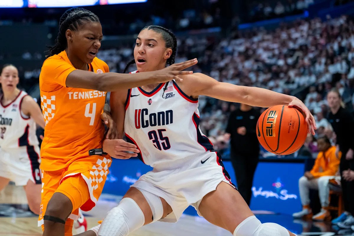 The end result doesn’t tell the rivalry game’s competitive nature. Tennessee climbed back from a 21-5 deficit to take the lead at 3:03 left of the second quarter and enter halftime tied at 42. It was the first time UConn had trailed in the second quarter, per the FOX broadcast, and the first time the Huskies entered the locker room without a lead.