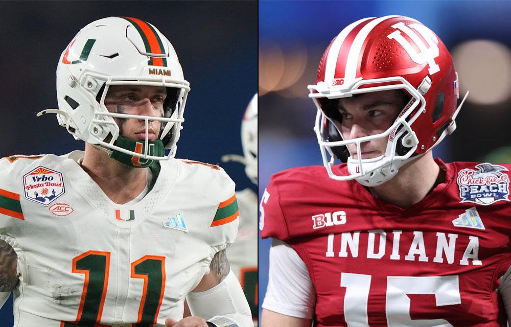 Miami’s Carson Beck and Indiana’s Fernando Mendoza will meet in the title game on Monday night. (Getty)