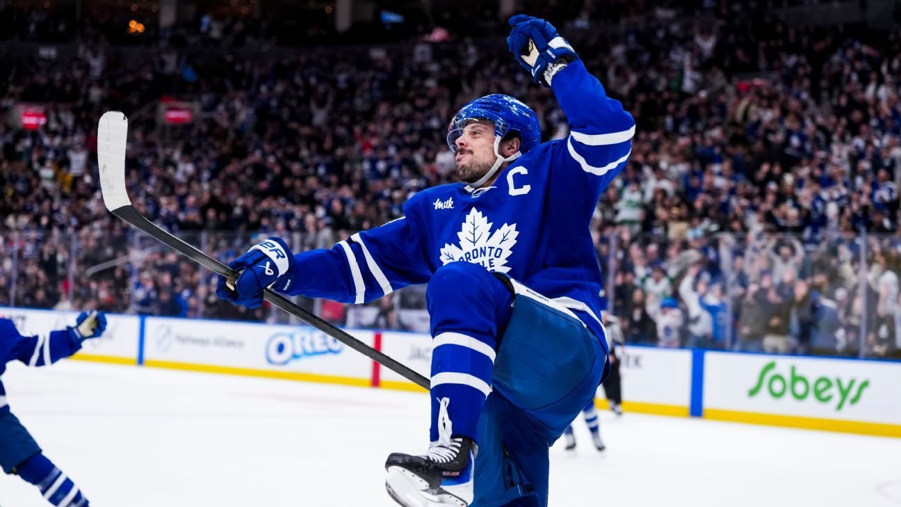 Home US SportsNHL Auston Matthews’ hat trick lifts Maple Leafs over Jets