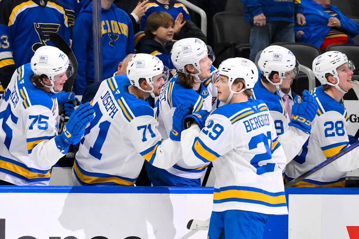 “(Berggren) can make a lot of plays, and it’s been really impressive watching him,” Robert Thomas said following the Blues’ 6-2 win over the Panthers on Saturday. “He wins battles, he has the puck a lot, and he’s always looking to make a pass. Just his confidence level right when he got here, you could tell he wanted the puck on his stick, and whether it’s off the rush or in the zone, he’s made a lot of great plays. Just being able to control the puck so that you can have your head up is a big thing that goes really unnoticed. His head is always up, and it’s always turning, so he’s always looking for someone. When you play with a player like that, you’ve just got to get open.”