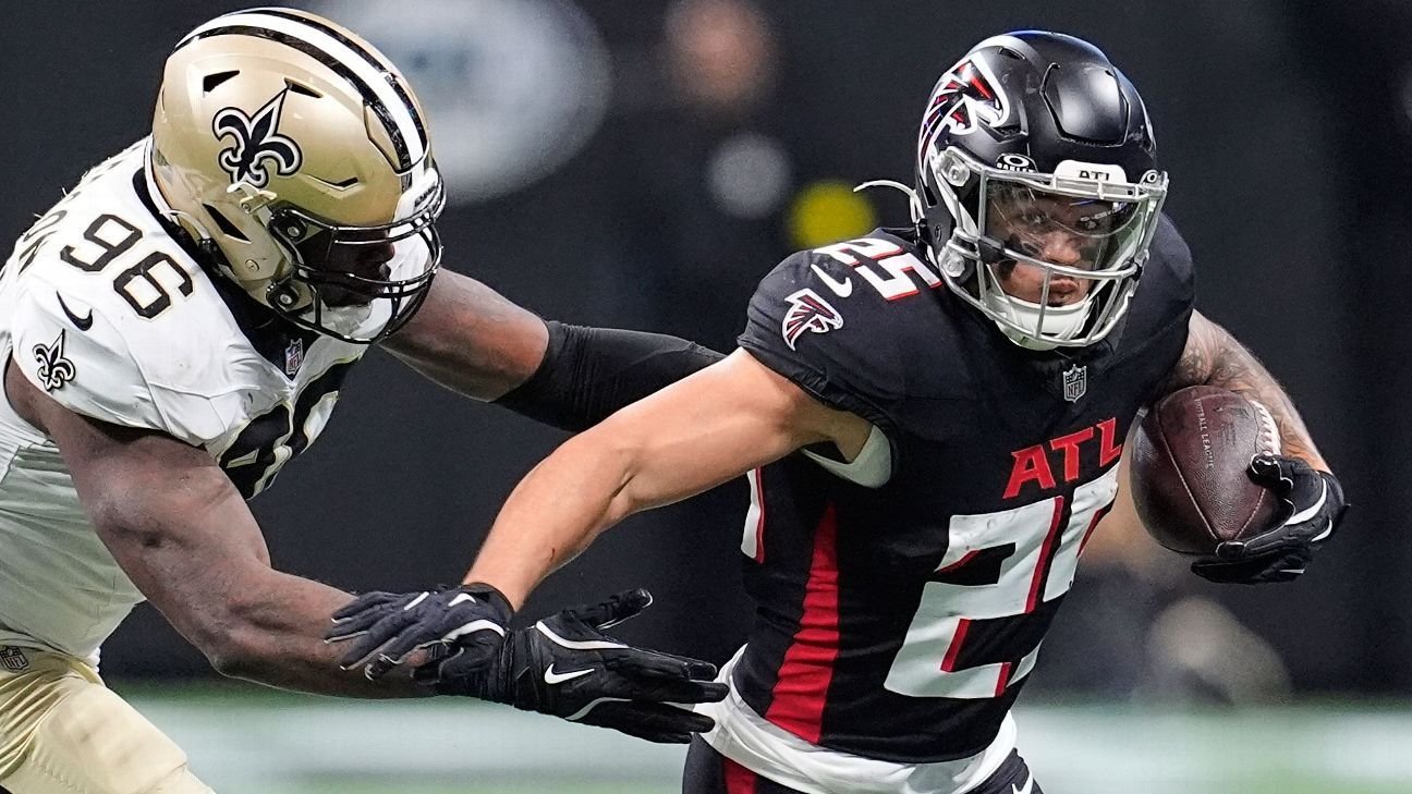 Allgeier rushed for 1,000 yards as a rookie in 2022, but has been Bijan Robinson‘s backup since 2023. He has the size — 5-foot-10, 225 pounds — to get tough yards and is hard to bring down, which will make him a force in the red zone and short yardage situations.