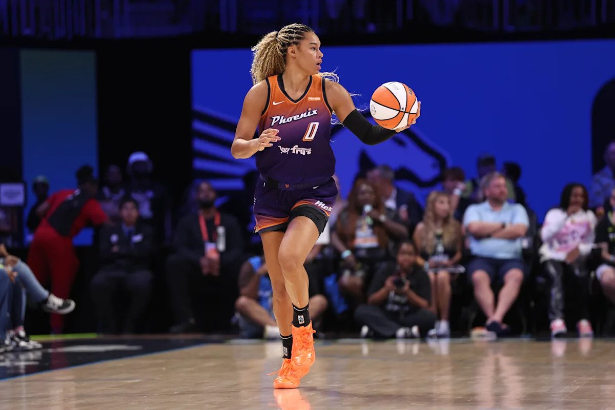 ARLINGTON, TX – SEPTEMBER 11: Satou Sabally #0 of the Phoenix Mercury handles the ball during the game against the Dallas Wings on September 11, 2025 at the College Park Center in Arlington, TX. NOTE TO USER: User expressly acknowledges and agrees that, by downloading and or using this photograph, User is consenting to the terms and conditions of the Getty Images License Agreement. Mandatory Copyright Notice: Copyright 2025 NBAE (Photo by Tim Heitman/NBAE via Getty Images) | NBAE via Getty Images