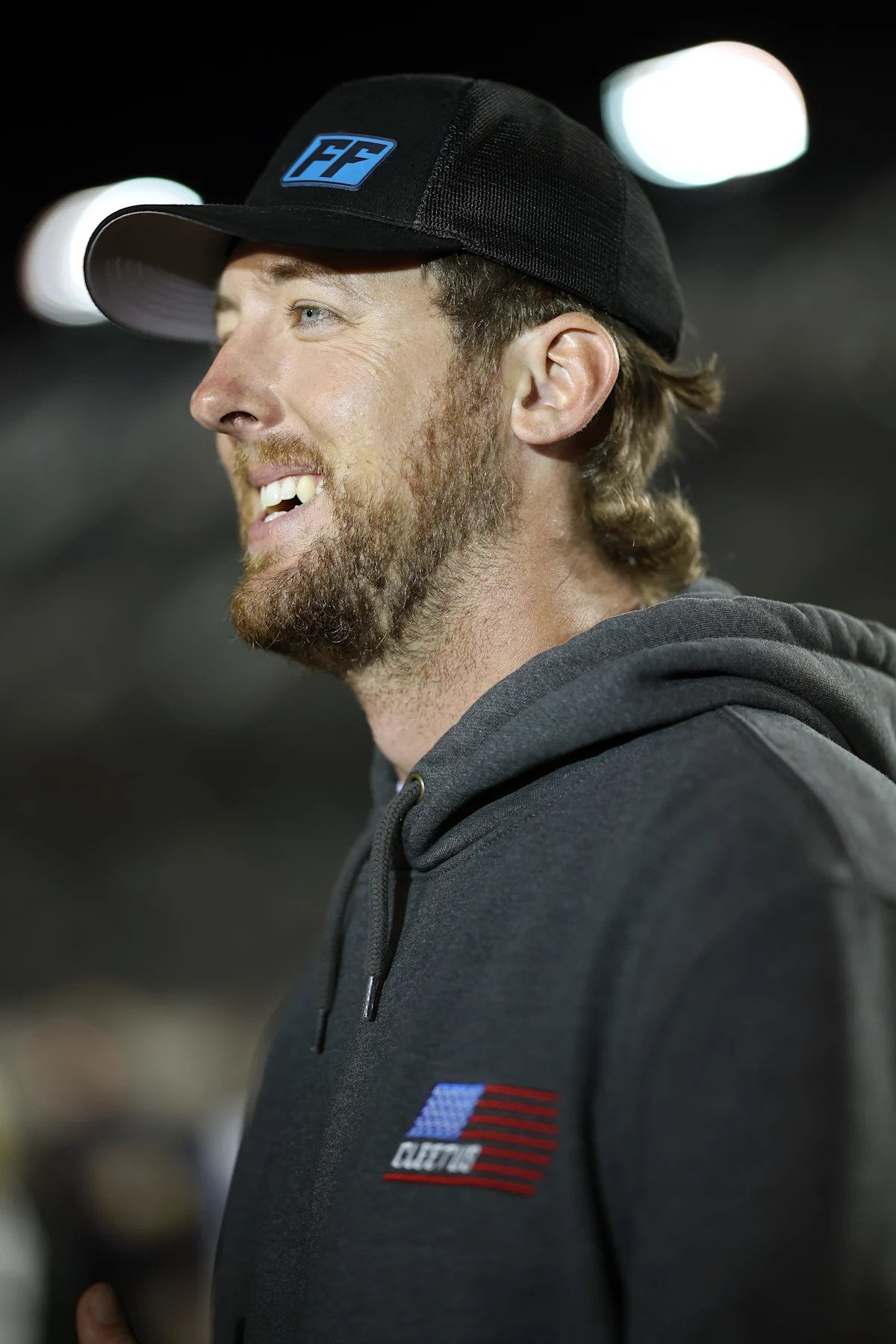 DAYTONA BEACH, FLORIDA – FEBRUARY 11: Garrett Mitchell, also known as Cleetus McFarland looks on during qualifying for the NASCAR Cup Series Daytona 500 at Daytona International Speedway on February 11, 2026 in Daytona Beach, Florida. (Photo by James Gilbert/Getty Images)