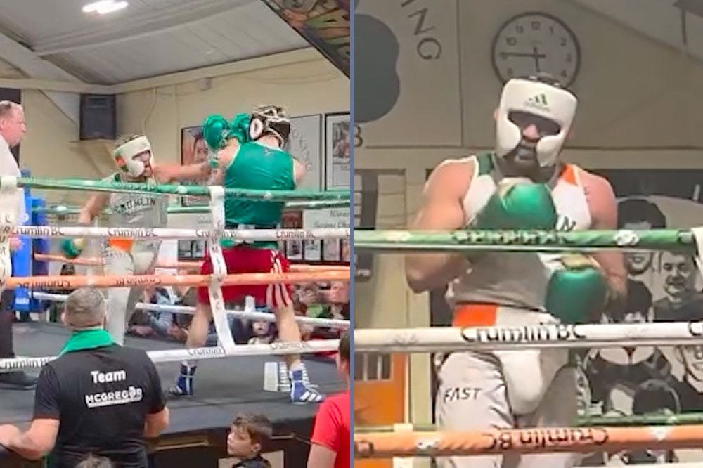 The exhibition boxing match took place at Crumlin Boxing Club in Dublin, Ireland, as part of its Good Friday show, according to Irish Boxing. McGregor, sporting protective gear, fought in a three-round bout, earning a pair of standing eight-counts.