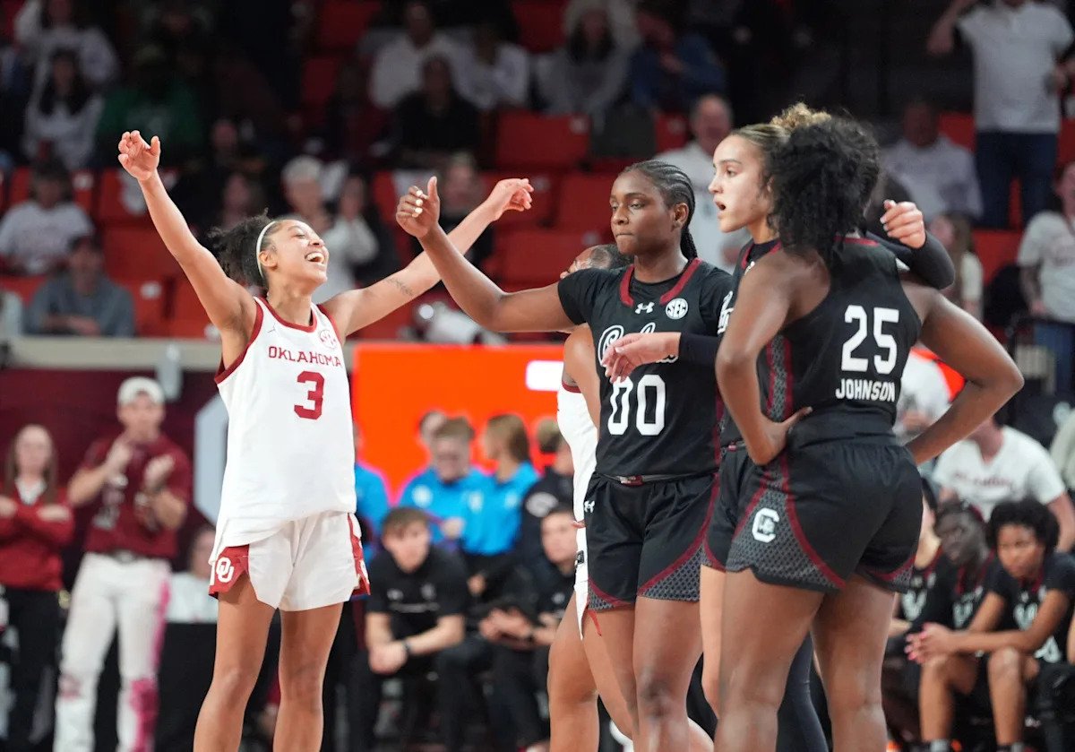 Oklahoma started the third quarter on a 8-0 run and never gave the momentum back until the last five minutes of regulation. The Gamecocks trailed 71-65 with 4:17 to play in regulation when a Tessa Johnson layup stopped a scoring drought.