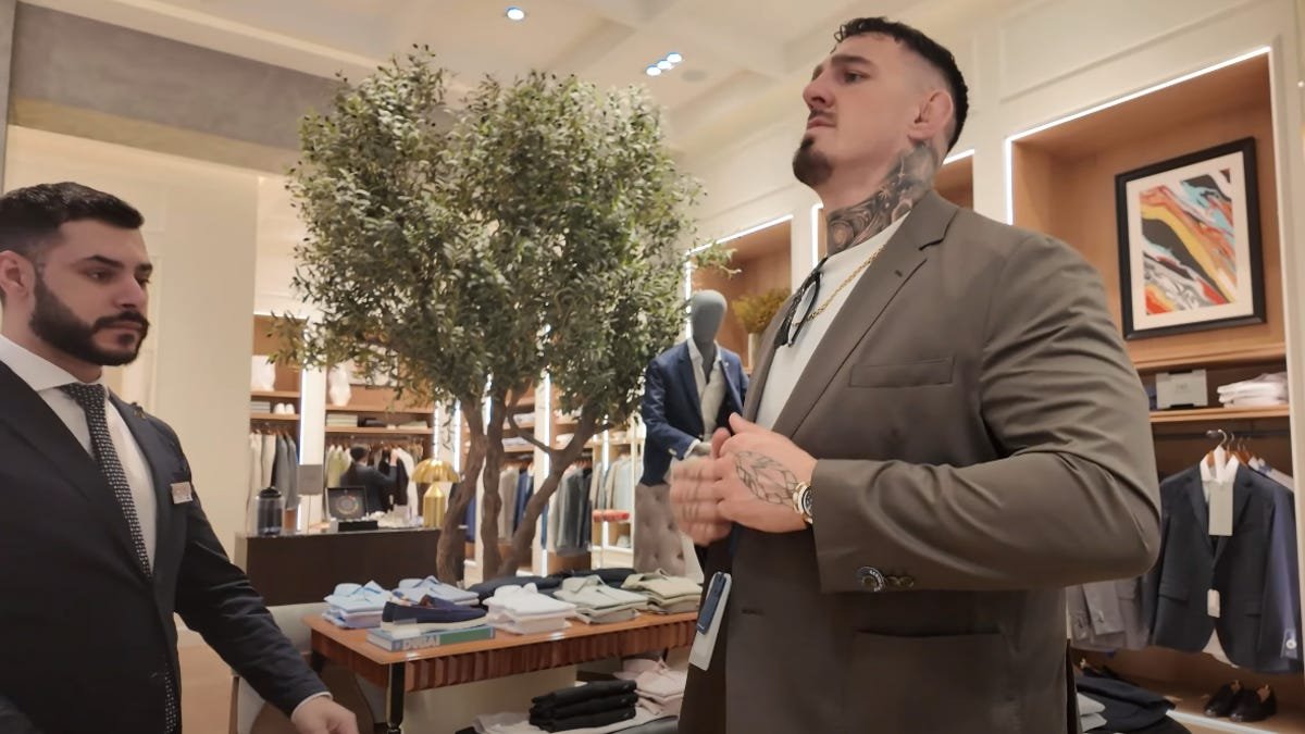 “Diva,” Andy said in a word, describing the scene of his son getting fitted for a new suit on the UFC champion’s YouTube channel. “No, it’s good. He likes this.”