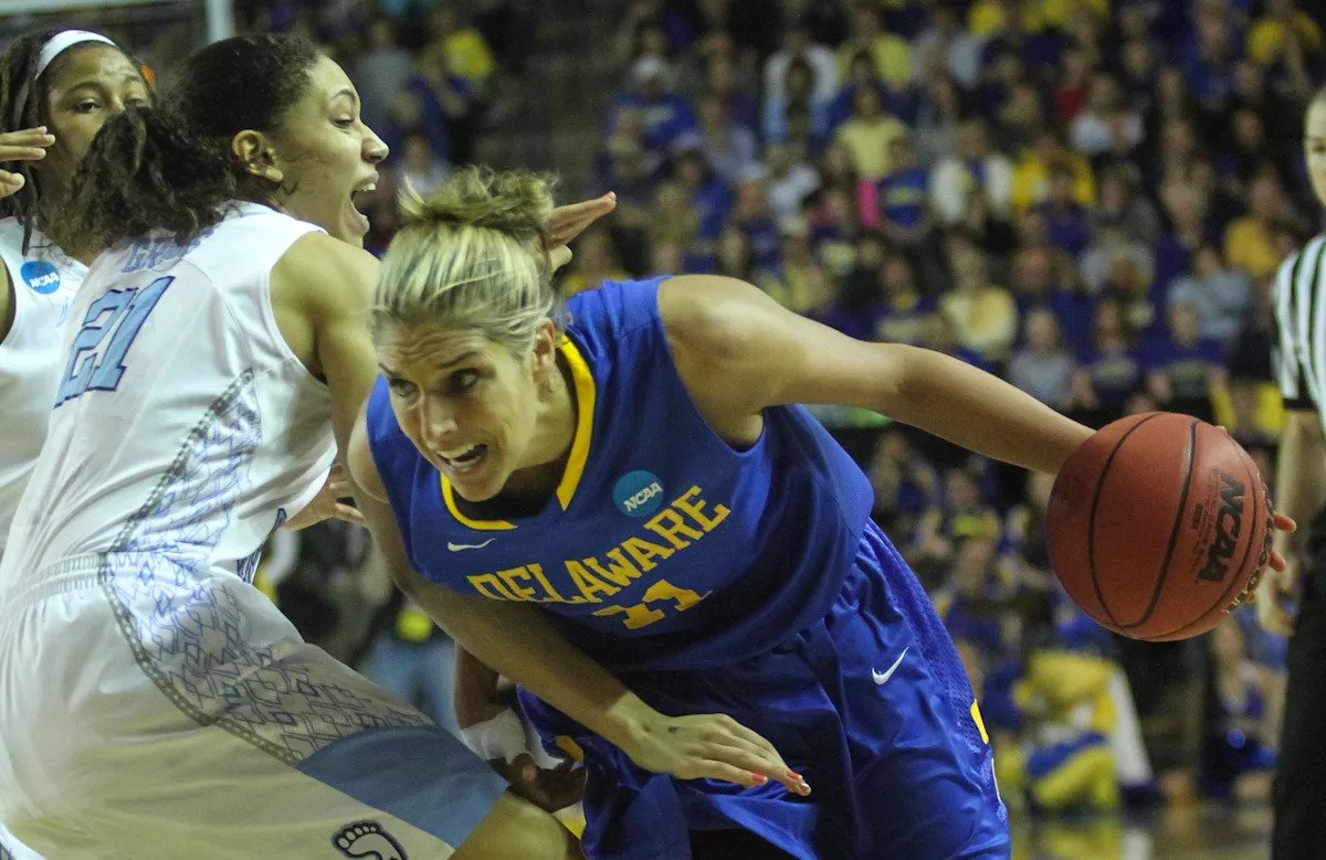 She sparked Delaware to Colonial Athletic Association titles in 2011-12 and 2012-13, when Delaware regularly earned national Top 25 notice. The Blue Hens were 42-0 in CAA games and 63-6 overall those two years and beat West Virginia and North Carolina in the 2013 NCAA Tournament before losing to Kentucky in the Sweet 16.