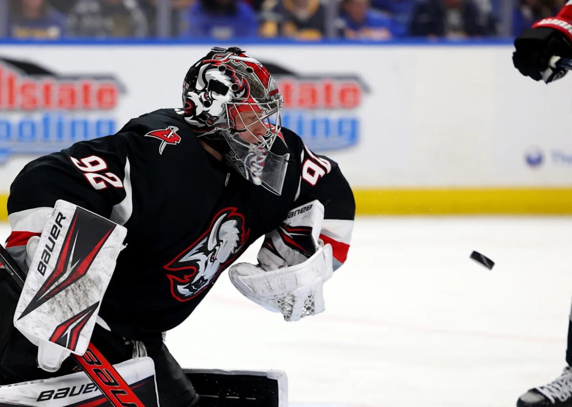 The news going into the Buffalo Sabres contest against the Columbus Blue Jackets was concerning, as head coach Lindy Ruff indicated that veteran goalie Alex Lyon pulled a muscle in New York City on Wednesday and would be out at least a week with a lower-body injury. The injury meant that rookie Colten Ellis would be making his first start in over two months, but the youngster stepped up with a 37-save performance in a 5-0 victory to earn his first career shutout and the Sabres a key two points in their race to win the Atlantic Division.