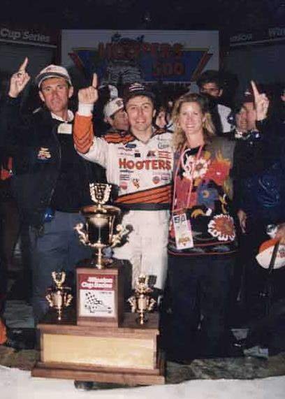 Rusty Wallace (center) celebrates his win at Bristol, dedicating it to Alan Kulwicki, who was killed in a plane crash three days earlier near Bristol, Tenn. Photo courtesy Tom Roberts.