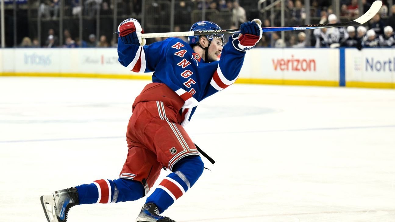 Up front that’s Alexis Lafreniere — who can’t stop scoring these days — and rookie Gabe Perreault, both of whom are skating on the top line. After Fox, blueliners Vladislav Gavrikov and, in leagues that reward blocked shots, Braden Schneider, deserve attention. Against the Ottawa Senators, Toronto Maple Leafs, Chicago Blackhawks and Florida Panthers, just a few points from the aforementioned could mean the difference between weekly playoff victory and defeat.