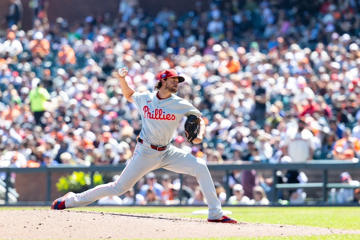 SAN FRANCISCO, CA – APRIL 08: Aaron Nola #27 of the Philadelphia Phillies pitches in the fourth inning against the San Francisco Giants on April 8, 2026 at Oracle Park in San Francisco, CA. (Photo by Matthew Huang/Icon Sportswire via Getty Images) | Icon Sportswire via Getty Images