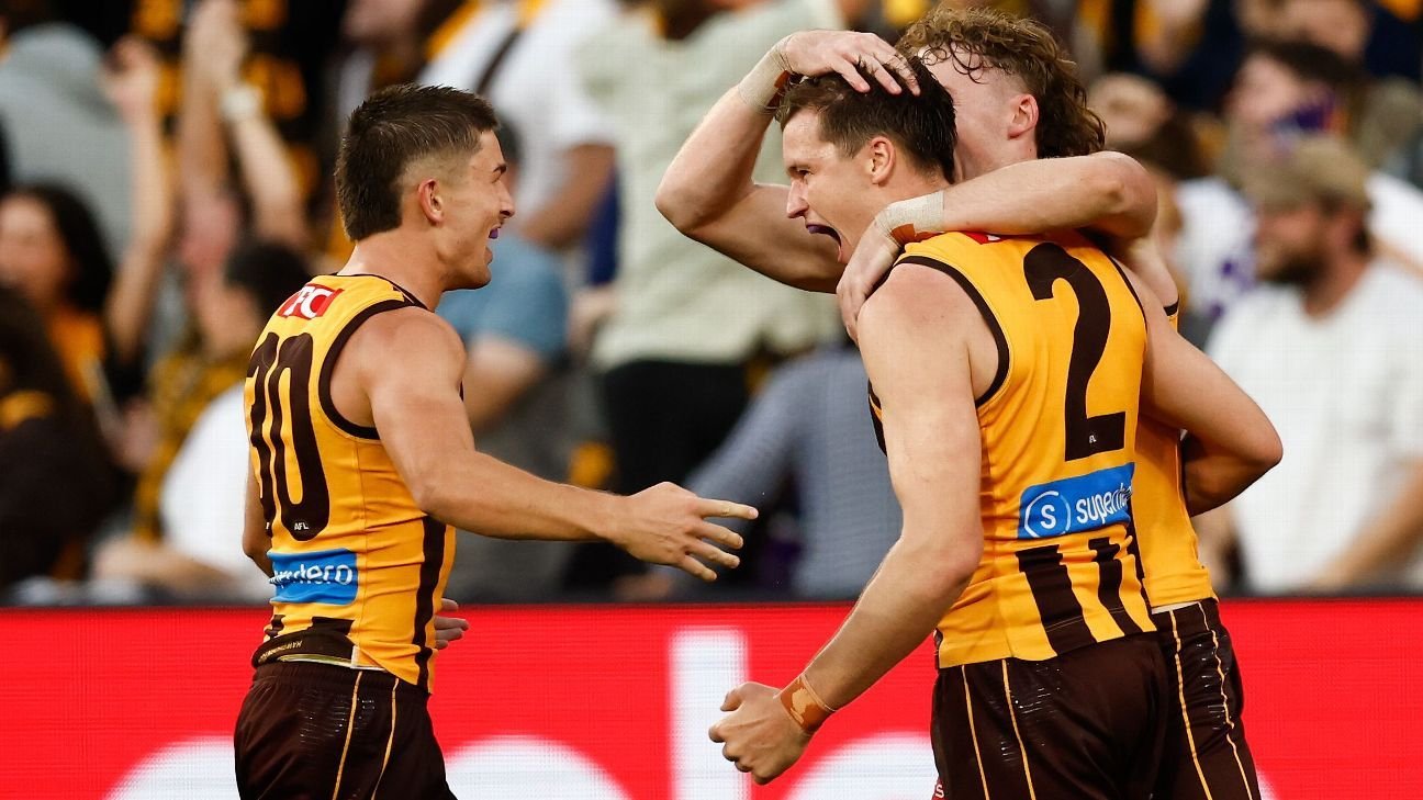 The game was played on a knife’s edge, with multiple lead changes but Geelong led by a game-high 13 in the fourth and appeared set to kick away for victory before a miraculous Nick Watson snap from the pocket inspired a Hawthorn surge.