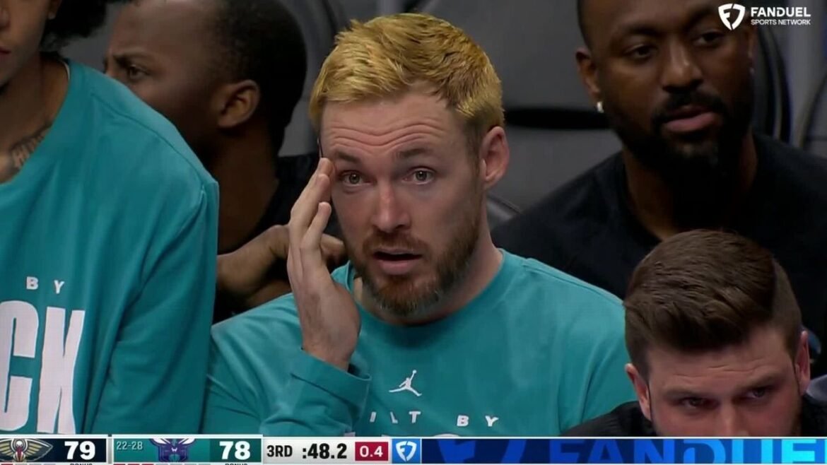 Connaughton kept the look under wraps pregame, warming up with a beanie. But the blond hair saw the light when the Hornets took the court to face the Pelicans.