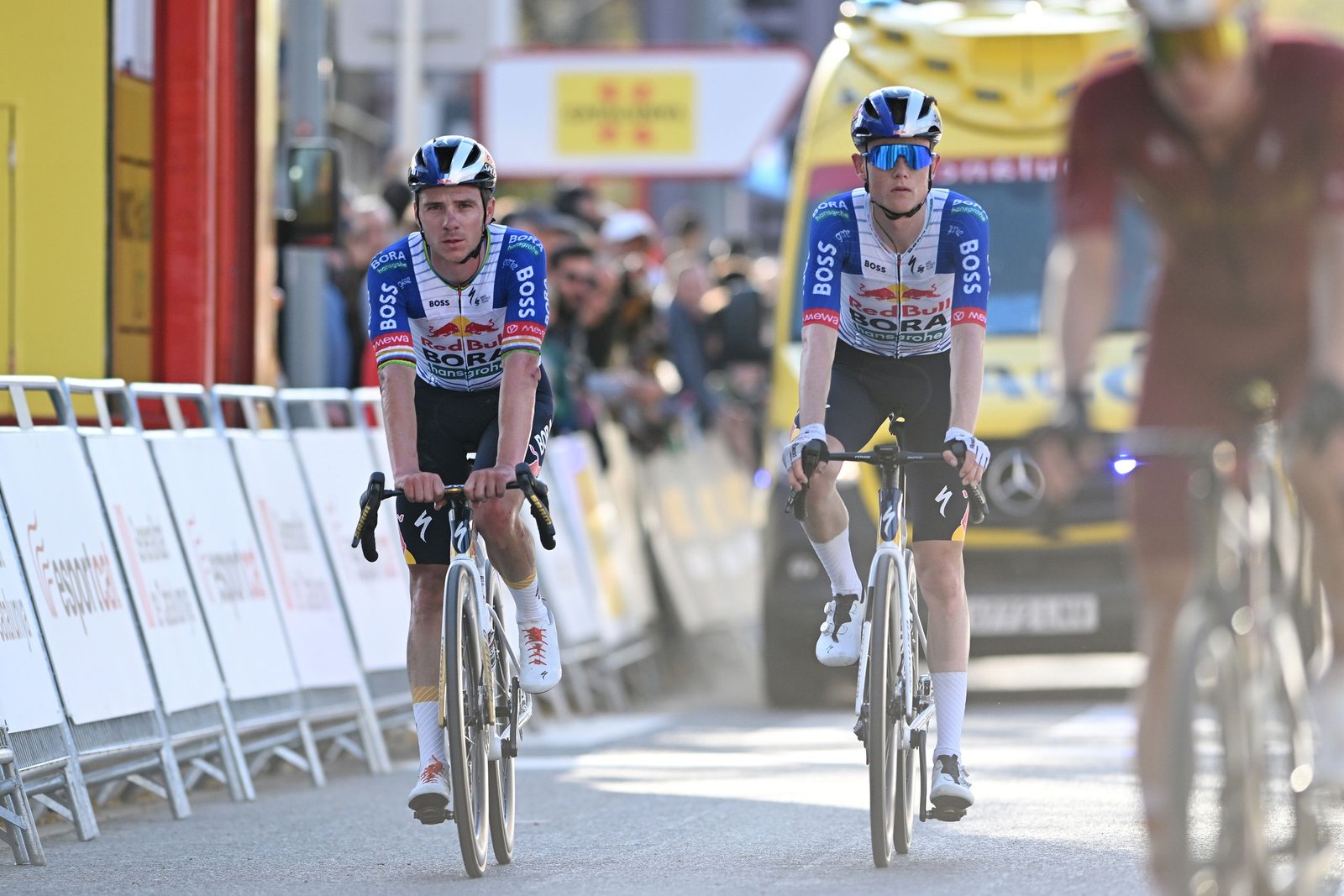 The Red Bull-Bora-hansgrohe rider was ahead of the peloton with Jonas Vingegaard (Visma-Lease a Bike) on Wednesday, when he fell on the approach to a roundabout.