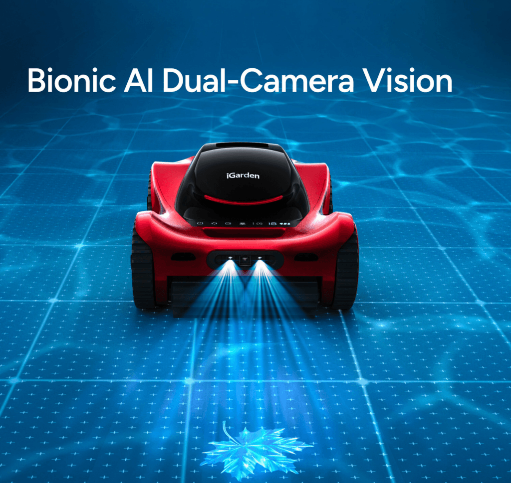 At the center of the system is iGarden’s Bionic AI Dual-Camera Vision and OmniLogic AI platform, which the company says gives the cleaner a 3D understanding of its underwater environment. That allows the unit to recognize obstacles, distinguish debris, adjust to changing surfaces and lighting conditions, and return to areas that may need additional cleaning.