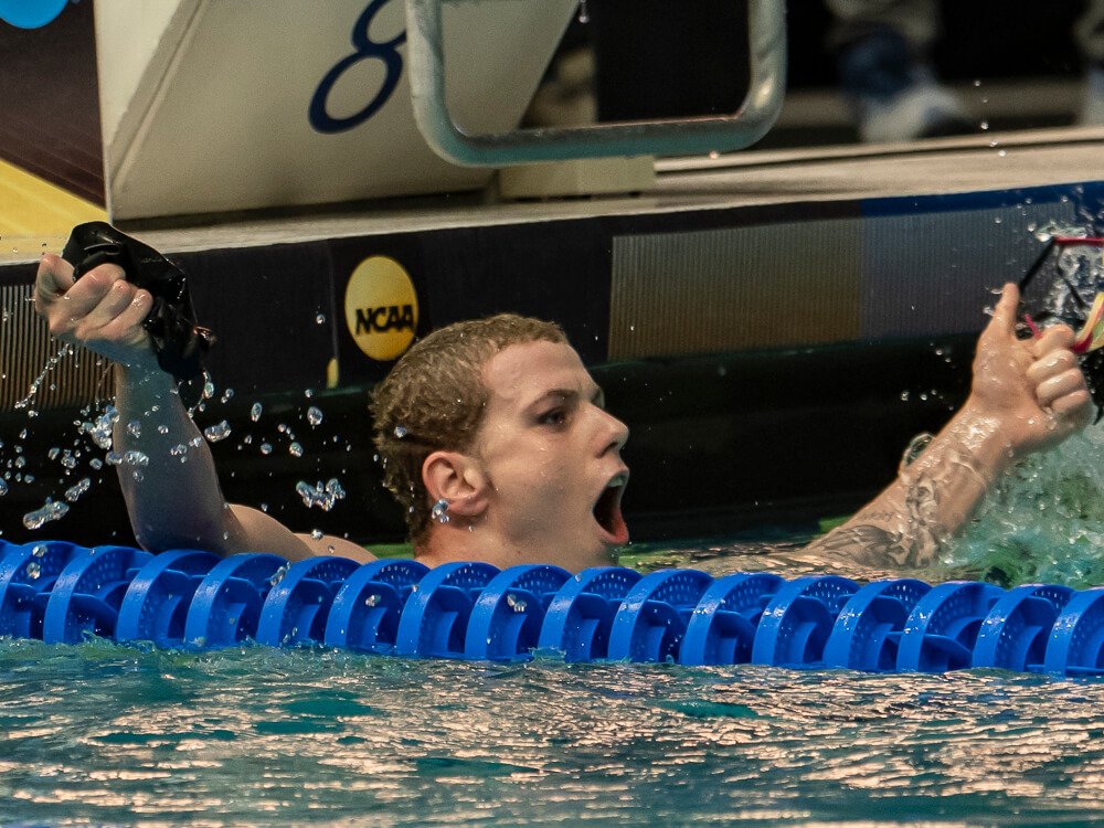 Indiana started supremely strong with a 1-2-3 finish in the backstroke. Senior Owen McDonald raced to the title with a swim of 44.52.