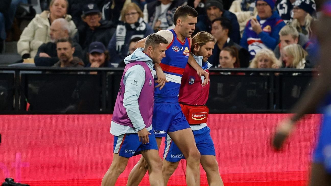 Tom Liberatore (concussion), Rory Lobb and James O’Donnell (both hamstring) were also hurt in a horror outing as the Dogs (4-2) slipped to a second-straight loss.