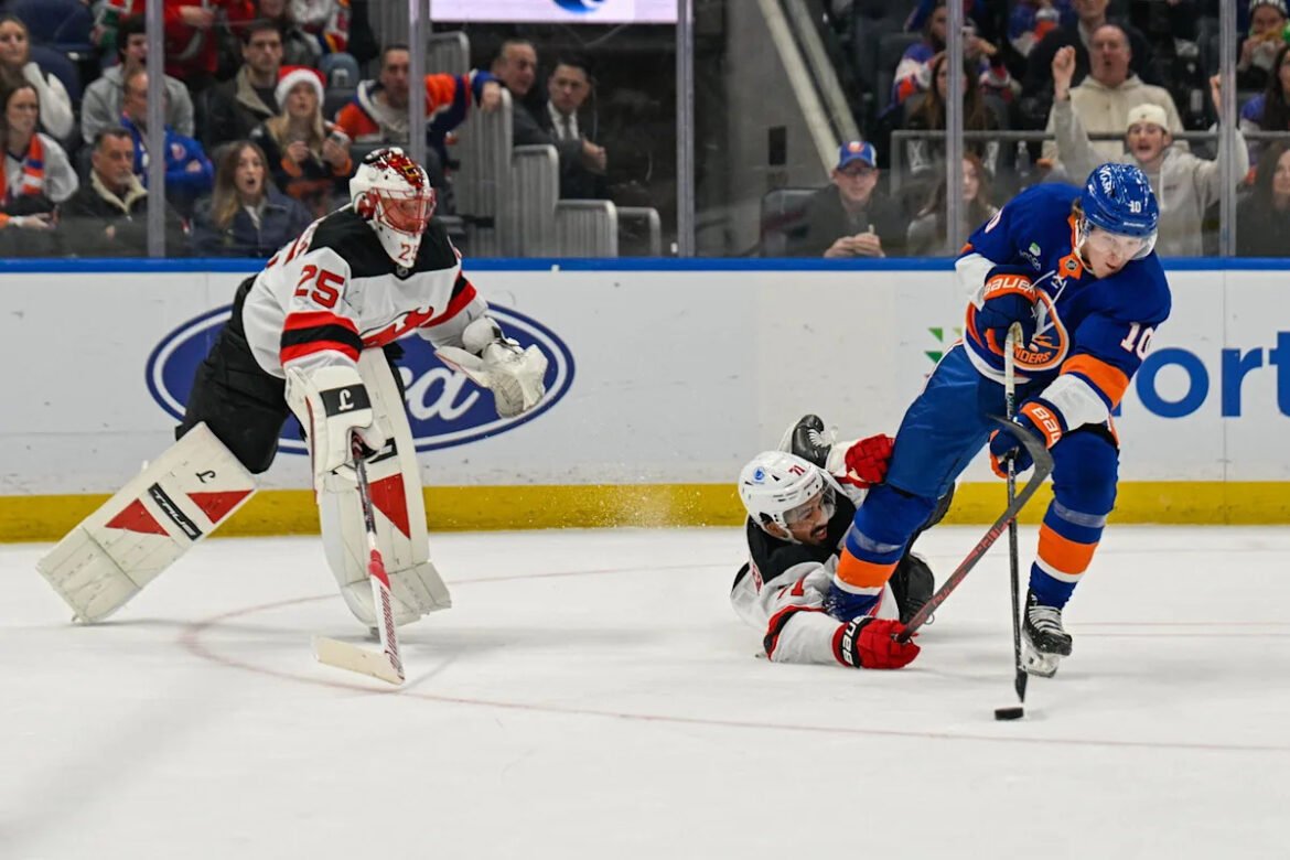 Brett Pesce scored, and Jacob Markstrom made 23 saves on 25 shots in the New Jersey Devils 2-1 loss to the New York Islandersat UBS Arena on Tuesday night.