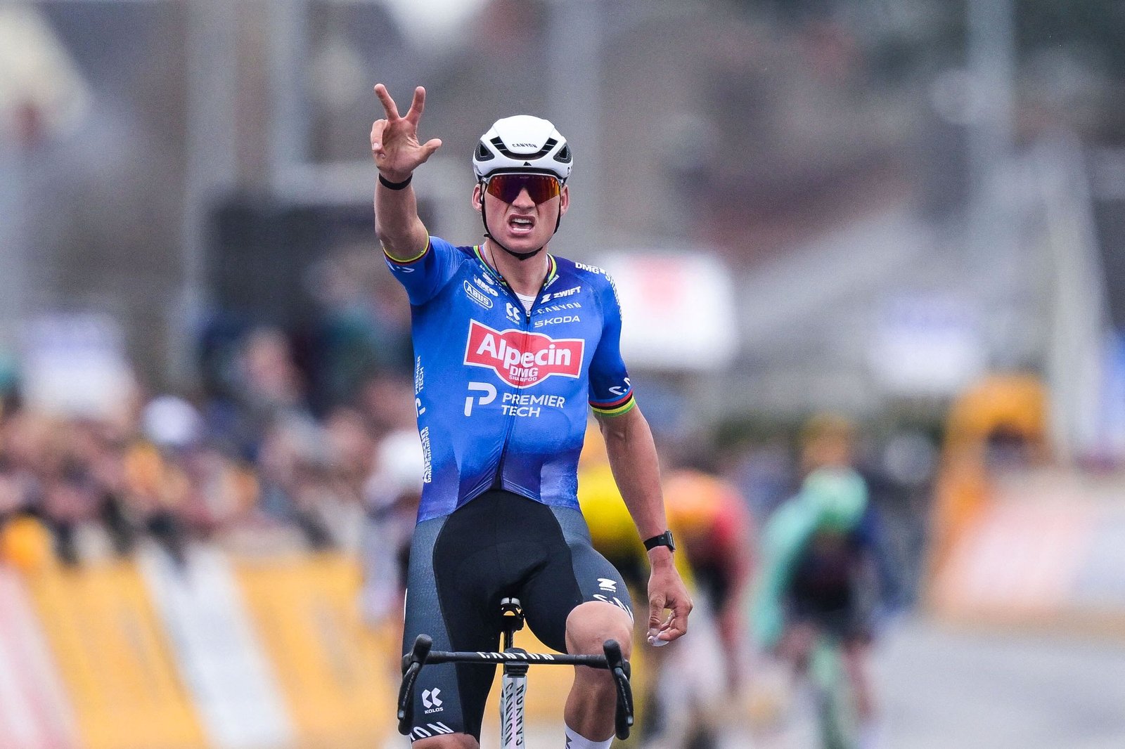 Few would be forgiven for thinking that this was race over, with the rider who won the last two editions out in front, but a group including DeWulf, Per Strand Hagenes (Visma-Lease a Bike), Florian Vermeersch (UAE Team Emirates-XRG) and Jonas Abrahamsen (Uno-X Mobility) started to reel the former world champion in. A time gap which was over a minute was reduced to 30 seconds with under 15km to go, and then close to 10 seconds with under 5km to go.
