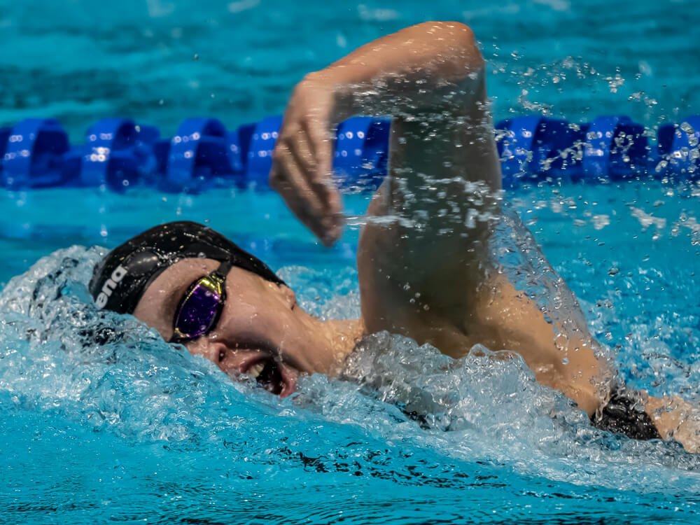 Meanwhile, five swimmers were all turning together every length. Virginia’s Katie Grimes pulled ahead but the next turn it was even again.