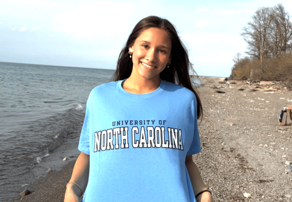 “I am so thrilled to announce my verbal commitment to continue my academic and athletic career at the University of North Carolina Chapel Hill! I am so thankful for this opportunity and for my friends, family, LG, and coaches for supporting me. A special thanks to Coach Mark and Coach Kayla for giving me the chance to become a part of the Tar Heel family! GO HEELS”