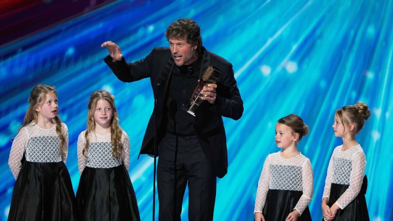 Stafford brought his four daughters — all dressed in identical black-and-white dresses — to the stage to accept the award at the NFL Honors show.