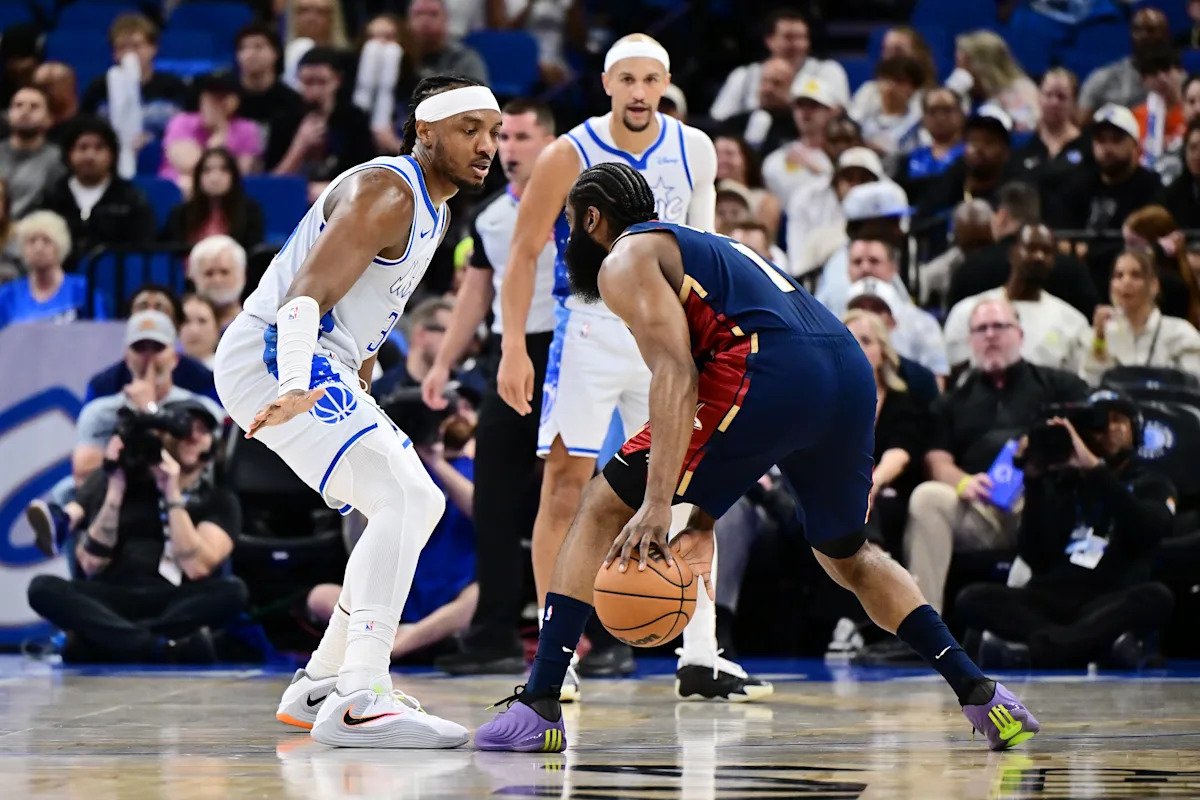 With under 20 seconds to play, the Magic attempted to dump the ball into the post for Paolo Banchero. The entry pass sailed out of bounds — with both James Harden and Banchero making an attempt to catch it. It was unclear if either player touched the ball before it went out of bounds. In real time, the official did his best and determined it was Orlando’s possession. But on such a tough call, you would have liked to see a replay review.
