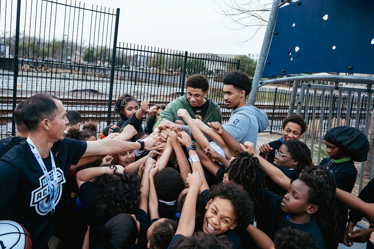 Spurs 2025 draftees Carter Bryant and Dylan Harper made an appearance, led some basketball activities on the new court, and a presided over a special shoe giveaway allowing students to customize their own sneakers.