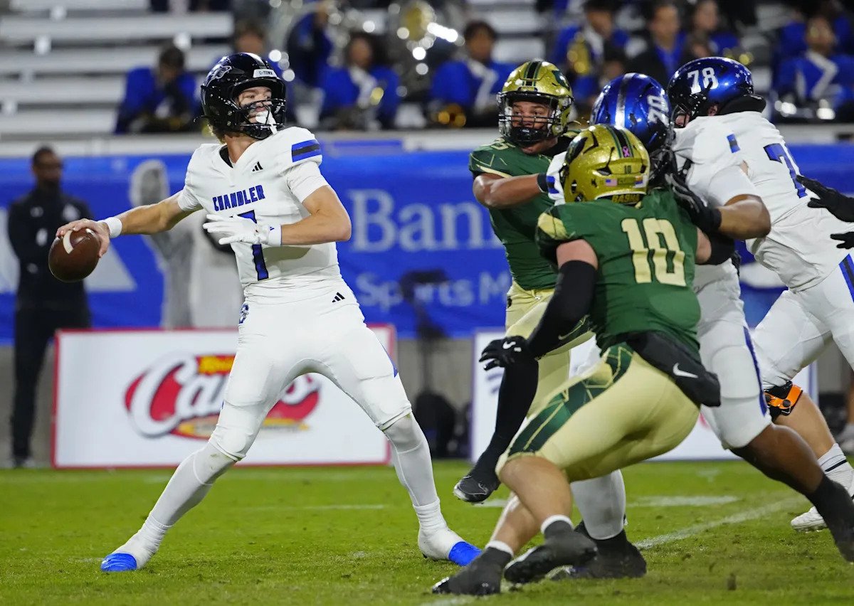 Oregon currently has the No. 7 class in the nation, per Rivals, and adding the 6-foot-3 passer could elevate the Ducks into the top five nationally. Mencl completed over 70% of his passes for 3,815 yards and 33 touchdowns against five interceptions in his junior season, leading Chandler to a state title berth. The Ducks could cap an incredible run of commitments in the 2027 class with the crown jewel at the most important position on the field.