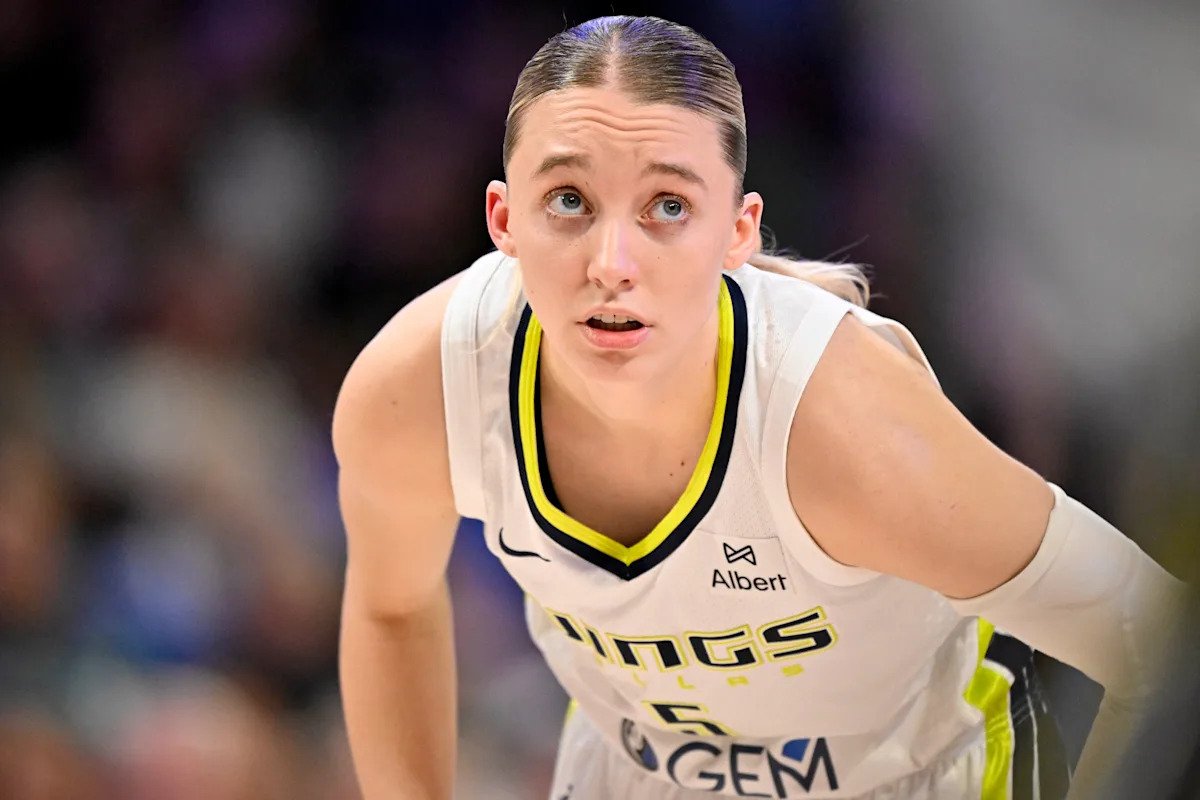 Sep 11, 2025; Arlington, Texas, USA; Dallas Wings guard Paige Bueckers (5) looks on during the second half against the Phoenix Mercury at College Park Center. Mandatory Credit: Jerome Miron-Imagn Images