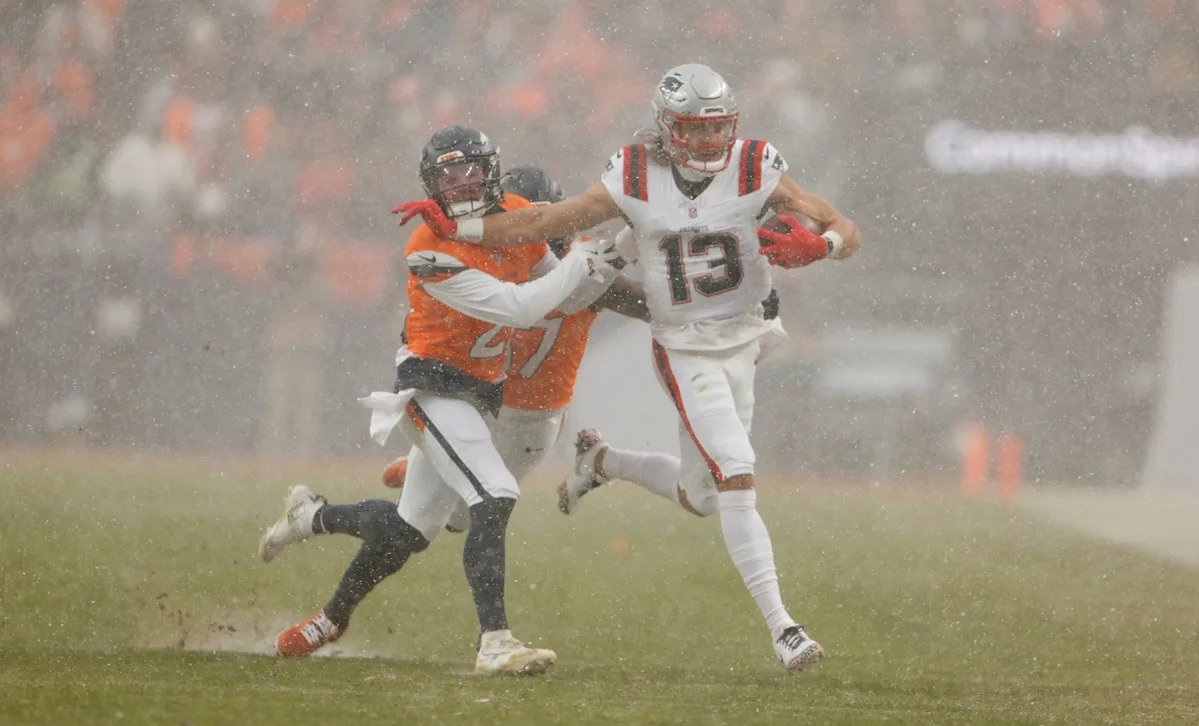 Entering Denver’s Mile High Stadium with his traditional bare feet and paying homage to the cult film The Warriors, Hollins was part of the Patriots’ starting lineup against the Broncos. He ended up ranking second among New England’s wideouts with 39 snaps and a playing time share of 61%. More importantly, he continued to prove his value to the operation, hauling in two passes for a team-high 51 yards.