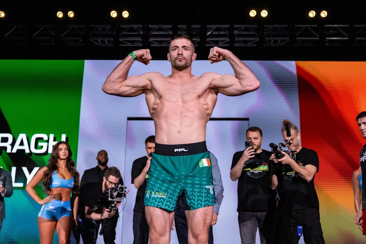 SBG Ireland’s Darragh Kelly (9-0) was on point for his first PFL main event against former featherweight contender Jay Jay Wilson. France’s Alex Lohore (26-11) and UFC veteran Rhys McKee (14-7-1), who battle in the co-main event, also faced no issues on the scale.