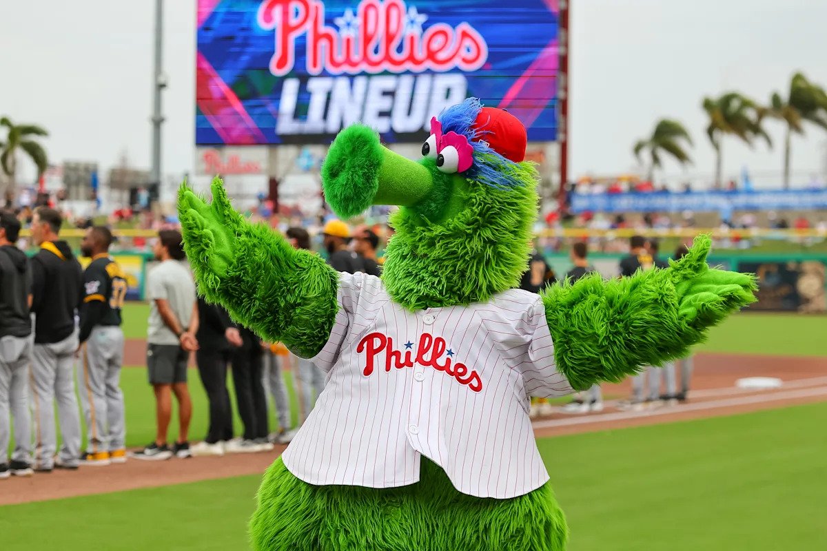 CLEARWATER, FL – FEBRUARY 22: The Philly Phanatic performs prior to the spring training baseball game between the Pittsburgh Pirates and Philadelphia Phillies at BayCare Ballpark on February 22, 2026 in Clearwater, Florida. (Photo by Mike Carlson/Getty Images) | Getty Images