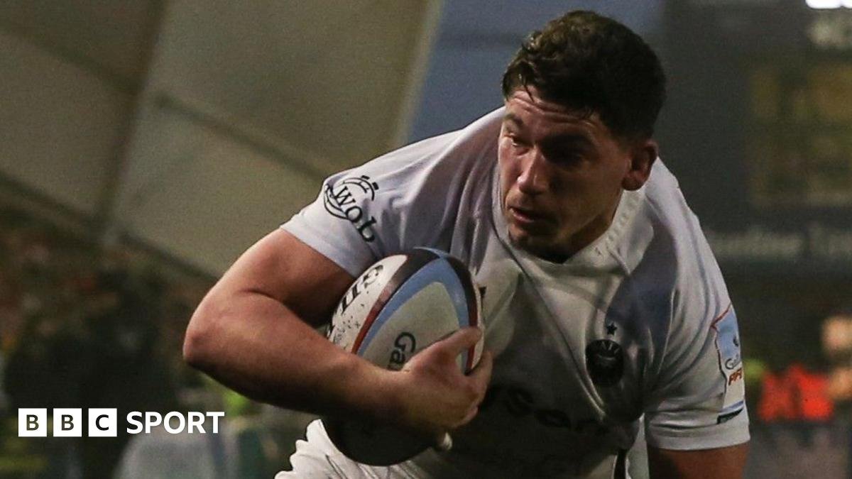 The hooker powered over twice from the back of the maul to underline the visiting pack’s dominance – the double sandwiched by an Onasanya reply, who bounced off two tackles to score with Tom Curtis adding the extras.
