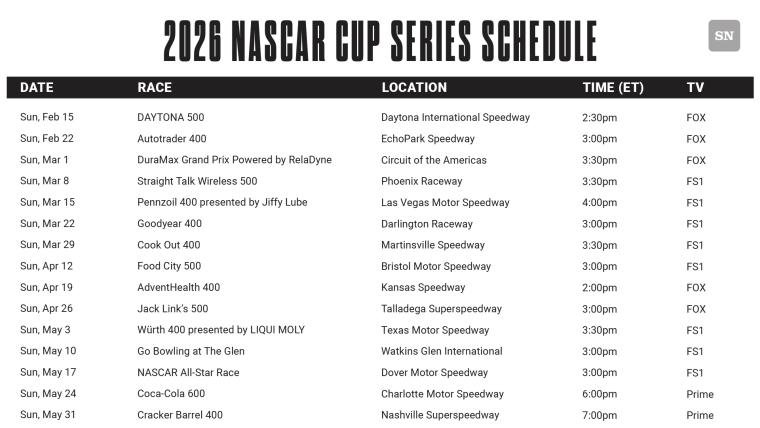 Here’s a look at the full schedule starting with the season-opening Daytona 500.