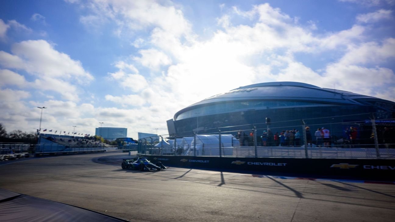 Practice for the inaugural Grand Prix of Arlington resumed after a delay of several minutes as IndyCar officials checked the temporary 2.73-mile, 14-turn circuit on the streets around the stadiums of the Dallas Cowboys and Texas Rangers.