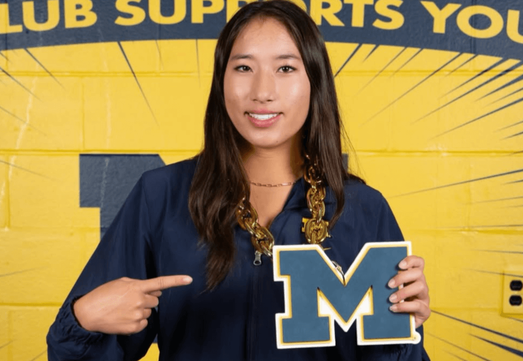 “I’m so excited to announce my verbal commitment to continue my academic and athletic career at the University of Michigan! I want to thank my family, friends, and coaches for being so supportive throughout this entire process. A special thank you to Coach Nathan for believing in me every step of the way and my former coach, Coach Hickman for always cheering me on. I am so grateful for Coach Bryon, Coach Matt, Coach Priscilla, and the rest of the Michigan staff for giving me this amazing opportunity. GO BLUE!”