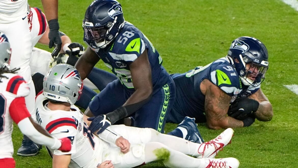 SANTA CLARA, Calif. — In the closing seconds of the third quarter of Super Bowl LX, Seahawks outside linebacker Derick Hall and defensive tackle Byron Murphy II teamed up to force a critical turnover.