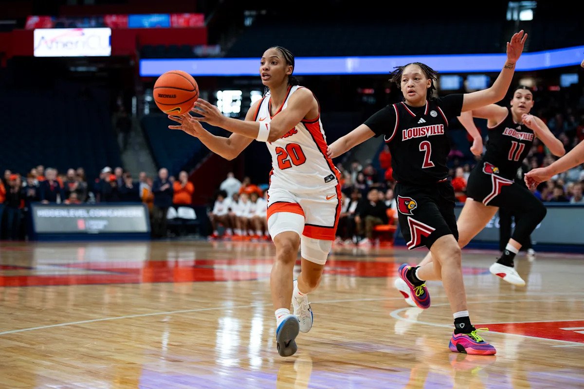 Fans at the Syracuse Orange (19-5, 9-4) women’s basketball game remained standing the entire first quarter. Unforunately they were standing because the Orange failed to make a field goal against the #6 Louisville Cardinals (22-4, 12-1) for a full quarter.