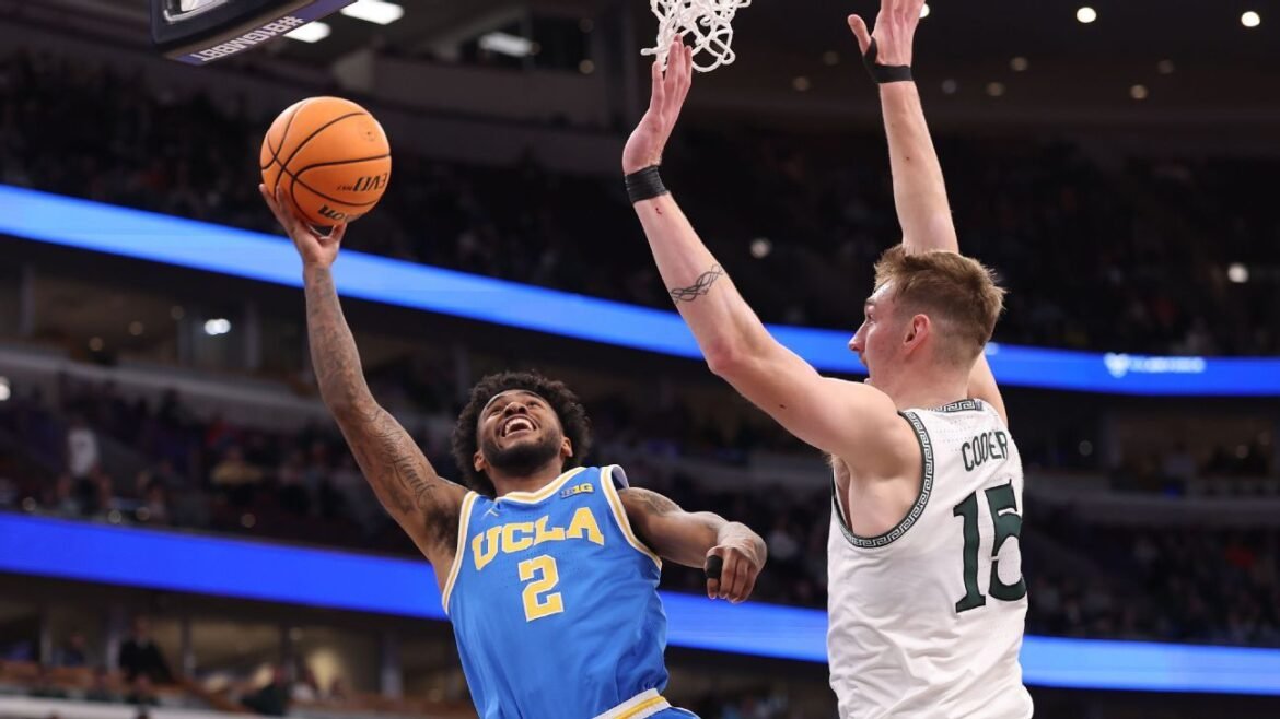 The Bruins were clinging to an 82-80 lead when Brandon Williams scored on a fast-break layup to make it a four-point game with 25 seconds remaining. Carson Cooper made a layup for Michigan State with 12 seconds left. UCLA’s Trent Perry immediately answered with two free throws.