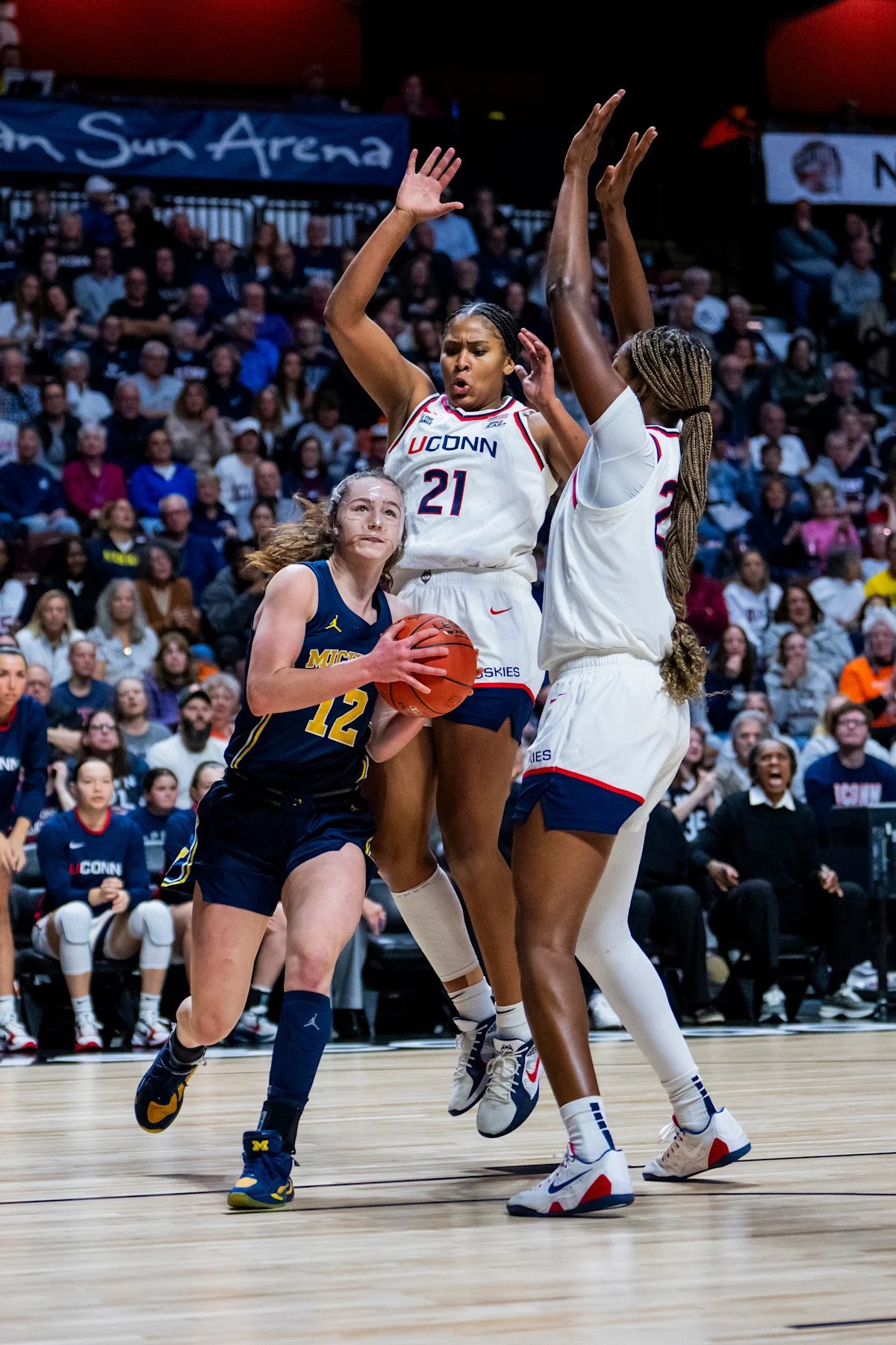 UConn is 1-0 all-time against Michigan, facing the Wolverines for the first time in program history last season. Before the Huskies fell to South Carolina in the Final Four — snapping a 54-game winning streak — Michigan was the team that had played UConn the closest, losing by three points at Mohegan Sun Arena in November. Wolverines guard Syla Swords filled up the stat sheet in the loss, tallying 29 points and nine rebounds. No. 1 overall WNBA Draft pick Azzi Fudd countered with 31 points for the Huskies.