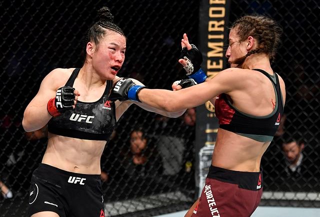 Zhang and Jedrzejczyk squared off in the co-main event of UFC 248 on March 7, 2020 at the T-Mobile Arena in Las Vegas. While Zhang battered Jedrzecjzyk with her left hook and straight right, the Polish standout got stronger as the bout progressed, firing back with punching combinations and kicks. Over time, Jedrzejczyk developed a massive hematoma on her forehead that would go down as one of the lasting images of the fight.