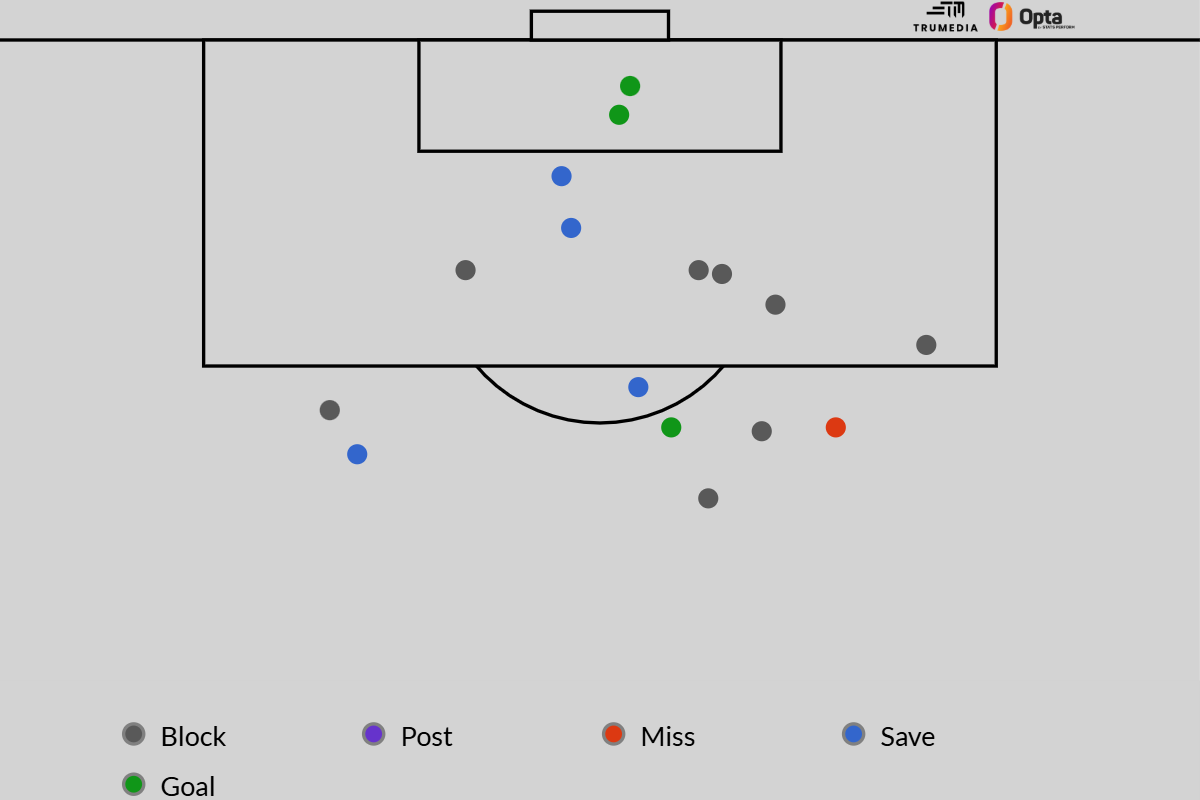 Fiamma Benítez’s shots in this season’s Women’s Champions League (ESPN/TruMedia)