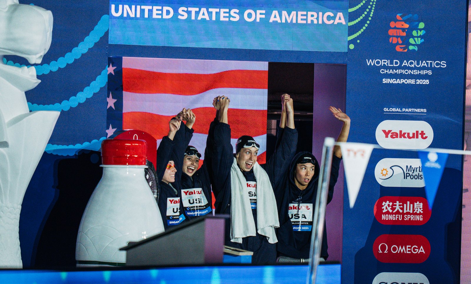 This year’s World Championships concluded with the American team of Regan Smith, Kate Douglass, Gretchen Walsh and Torri Huske winning gold in the women’s 400 medley relay in world-record time. It is impossible to fully predict the next three years, but no one would be surprised if an identical scenario played out in the last swimming race of the Los Angeles Olympics.
