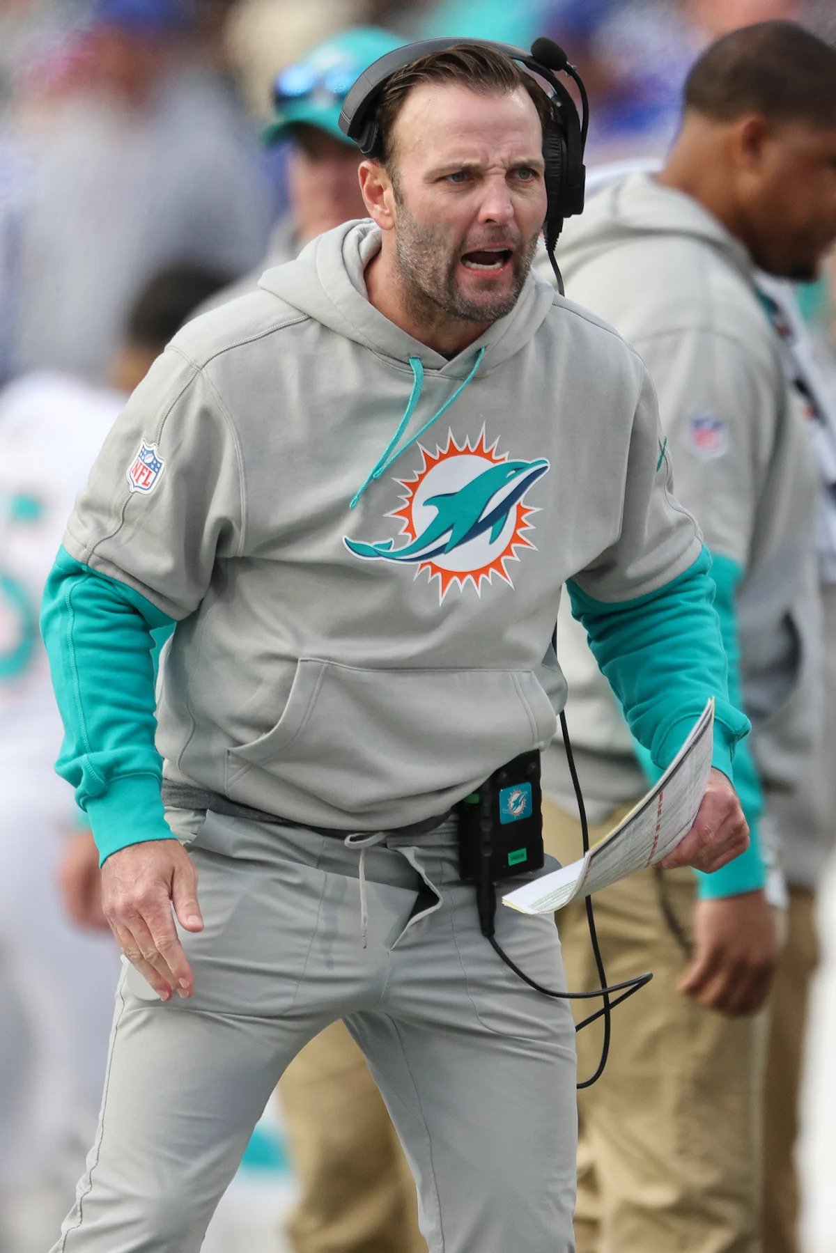 Smith, a former starting center in college for Miami of Ohio, started in the NFL as Assistant Offensive Line coach under Sean Payton in New Orleans for several years then became tight ends coach under John Fox in Chicago for three years and then in the same role under Jon Gruden for three seasons with the Raiders. He then served as run game coordinator/offensive line coach under Bradon Staley with the Chargers for a season before being elevated to offensive coordinator under McDaniel in Miami.