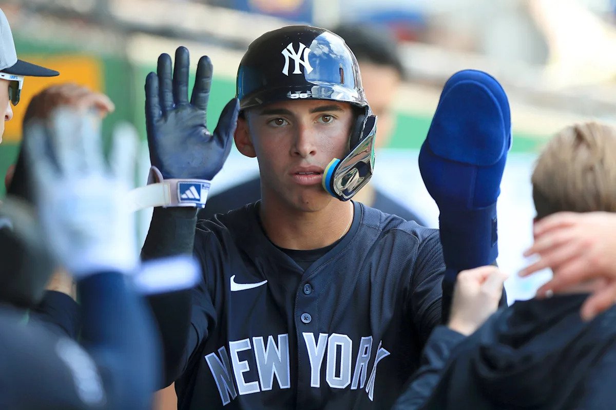 George Lombard Jr. was the Yankees’ first-round selection in the 2023 MLB Draft and is their top-ranked prospect according to MLB Pipeline at No. 32 overall. The son of former major-league outfielder George Lombard, the 20-year-old shortstop played 132 games between High-A Hudson Valley and Double-A Somerset in 2025, slashing .235/.367/.381 with 32 doubles, 9 homers, 35 stolen bases, a 15-percent walk rate, 25.2-percent strikeout rate, and a 127 wRC+. He struggled initially at the plate upon his promotion and is unlikely to be called up to the majors in 2026 according to Brian Cashman, though the GM said in the same sentence that his defense was big-league ready. This is his second spring as an NRI after impressing last spring with a pair of home runs in 28 plate appearances.